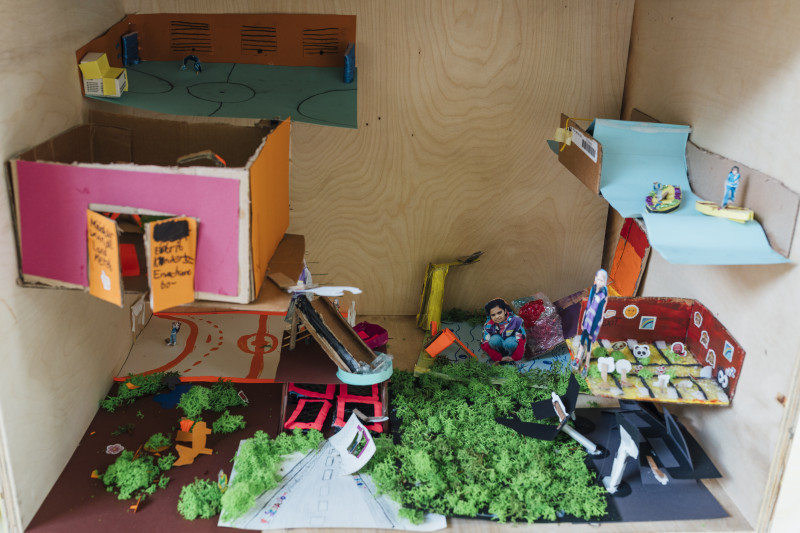 Ausgestattet mit Kameras und Notizblöcken wurden verschiedene Orte besucht, öffentliche Plätze, leerstehende Bürohäuser und Bau-Ruinen. Es wurden Interviews geführt und sich mit Menschen vor Ort ausgetauscht, Eindrücke gesammelt und schließlich mit unterschiedlichen Materialien wie Knete und Pappe an einem gemeinsamen Modell gebaut, in welches die Ideen der Kinder und Jugendlichen einflossen.