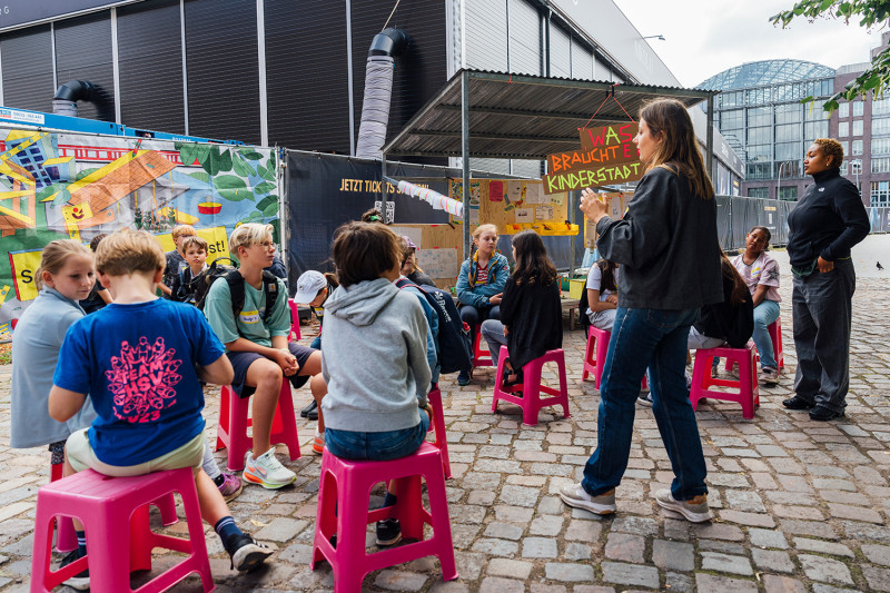 Unter dem Slogan „Wir entern die Stadt“ spielte sich die Kinderstadt dieses Jahr als Pop-up Mini-Kinderstadt vom 28. Juli bis 1. August in der Hamburger Innenstadt ab. Als Teil des Hamburger Programms „Verborgene Potenziale – Gemeinschaftliche Entwicklung der Nutzungsvielfalt für eine lebendige und resiliente Hamburger Innenstadt“ ging es diesmal vor allem um die Frage, wie sich Kinder und Jugendliche die Zukunft der Innenstadt vorstellen. Das Ziel der Tage war, Kindern und Jugendlichen mehr Sichtbarkeit im Stadtraum zu verleihen und gemeinsam den Freiraum zu erkunden, einzunehmen und zu gestalten, in dem sie aktiv Ideen entwickeln, planen, bauen und demokratische Prozesse spielerisch lernen.